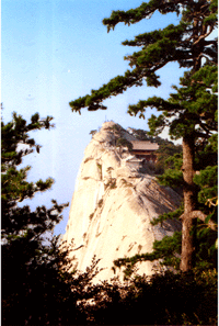搔闻问青天,曾离李谪仙。 北 峰 峰北临白云峰,东近量掌山,上通东西南三峰,下接沟幢峡危道,峰头是由几组巨石拼接,浑然天成。绝顶处有平台,原建有倚云亭,现留有遗址,是南望华山三峰是苍龙岭的好地方。峰腰树木葱郁,秀气充盈,是攀登华山绝顶途中理想的休息场所,1996年开通的登山缆车上站,即在峰之东壁。 峰上景观颇多,有影响的如真武殿、焦公石室、长春石室、玉女窗、仙油贡、神土崖、倚云亭、老君挂犁处、铁牛台、白云仙境石牌坊等,且各景点均伴有美丽的神话传说。 长春石室是唐贞观年间道士杜杯谦隐居之处。传说杜杯谦苦心修炼断谷绝粒,喜好吹奏长笛,经常叫徒弟买回很多竹笛,吹奏完一曲,就把笛投于崖下,投完后再买,往而复始,从而间断。因他能栖息崖洞中累月不起,便自号长春先生。 真武殿为供奉镇守九州的北方之神真武大帝而筑。焦公石室、仙油贡、神土崖皆因焦道广的传说得名。相传北周武帝时,道士焦旷,字道广,独居云台峰,餐霞饮露,绝粒避谷,身边