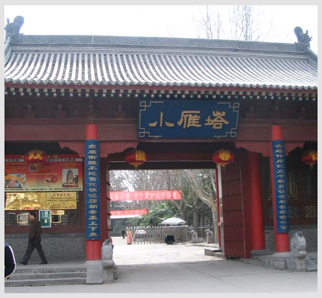 小雁塔位于距西安城1公里处的荐福寺内。荐福寺创建于公元684年,是在唐高宗死后百日,为其献福而建的,所以最初起叫献福寺。公元698年改名荐福寺。荐福寺是我国另一位伟大的翻译家义净法师的译经处。小雁塔建于公元707年,共15级。义净法师是为了