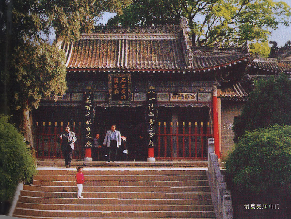 诸葛亮庙始建于唐代,庙宇坐南朝北,耸峙原头,雄伟壮观,进入金碧辉煌的山门,依次是高大的献殿、正殿、八卦亭、屋檐脊兽,千姿百态,墙壁彩绘,绚丽夺目。献殿两