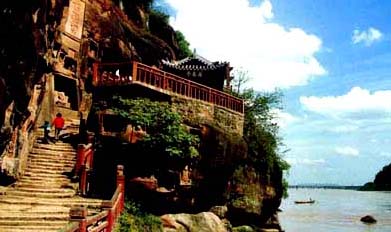 千佛岩景区位于乐山市夹江县城西3公里处。这里风景如画,依山傍水,被称作“青衣绝佳处”。大观山和依凤岗对峙,青衣江从中蜿蜒而过,形成“两山对峙,一江口流”的旖旎风光。 靠青衣江左岸的石壁上,排列着200多窟石刻造