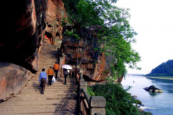 像共2400余尊,故称“千佛崖”。像开凿于隋,兴盛于唐,延及明、清;造像排列错落有致,少则独占一窟,多则上百尊集于一窟;大可逾丈,小不及尺,造型优美,技艺精湛,姿态各异,绚丽多彩,尤以“净土度”为佳;显示了中国古代高超的石刻艺术水平。除摩崖造像外,还有琳琅满目的历代题刻。
