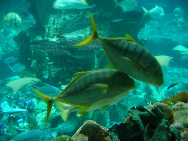 海洋剧场:海洋剧场是海洋哺乳类动物一展身手的好地方。在剧场内有3,500个座位,每天为游客提供数场精采绝伦、有趣可爱的海豚和海狮表演。 鲨鱼馆:在高地,花费四千万港元兴建的鲨鱼馆饲养了近70条鲨鱼,共有约35个品种,包括外形谐趣、叫做“肥仔”的啡护鲨。这里有一条长11.5米的透明纤维观赏隧道,游客置身其中,犹如身处深海,四周游弋的鲨鱼亦仿似触手可及。 机动游戏:疯狂过山车位于高地上,极其刺激好玩,更是全世界最长和最快的过山车。此外,其它机动游戏如飞天秋千、摩天巨轮和翻天飞鹰等亦十分精彩,喜欢刺激的游客绝不容错过。