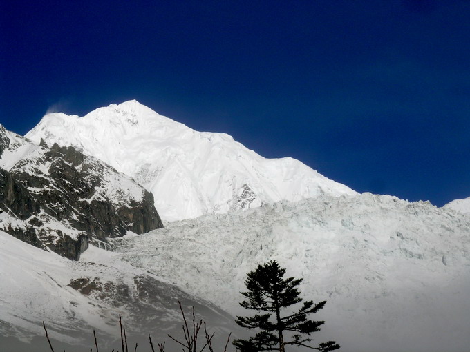一号冰川长2.4公里,平均宽度500米,面积1.85平方公里,最大厚度140米,年均运动速度约5米,底部海拔高度为3740米。冰川内部晶莹蔚蓝,冰面裂隙纵横;金字塔般的角峰,锯齿形的刀脊,弧形的冰川终碛和喧腾的冰川河独具魅力,令人震撼。在一号冰川下面海拔3500米以上,可以看到成层的槽谷、岩坎、岩盆、冰斗及状似绵羊脊背的羊背石等冰蚀景观,在海拔2800米以上的谷地保存着各时期的冰川堆积物。