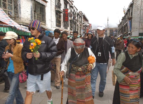 八廓街是拉萨最古老的一条街道,也就是通常所说的“八角街”,过去只是单一地围绕着大昭寺的转经道,藏族人把它称作“圣路”。如今的八廓街既是转经道,又是一条充满民族特色的购物长廊。是一整片旧的、有着浓郁藏族生活气息的城区。一栋栋石砌的藏式楼房组成的街道大都保留了原有风貌,地面铺就着手工打制的石板。围绕八廓街逛一圈,可随意挑选称心的纪念品。还可以从那一步一叩的虔诚中去感受宗教的神秘。