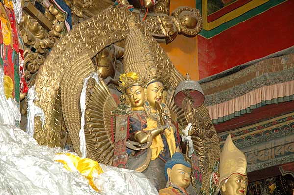 哲蚌寺西南角的甘丹颇章是1530年左右由二世达赖根敦嘉措主持修建的。原为二、三、四、五世达赖住地。五世达赖受清朝册封后,始由甘丹颇章移住布达拉宫,但甘丹颇章曾被作为格鲁派政教合一地方政权的代称。