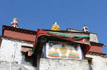 雍布拉康主要供奉释迦牟尼佛像。宫殿内的壁画上生动地描绘了西藏的第一位国王,第一座建筑,第一块耕地的历史故事。 雍布拉康分为两部分,前部是一幢多层建筑,后部是一座方形高层碉堡望楼,与前部相连。公元5世纪,藏王托托念赞时期,传说一本佛经从天而降,正好跌在雍布拉康宫顶,当时无人能识。有圣人断言,到了公元7—8世纪就有人能解读此书。所以这本书被很好地保留在雍布拉康。