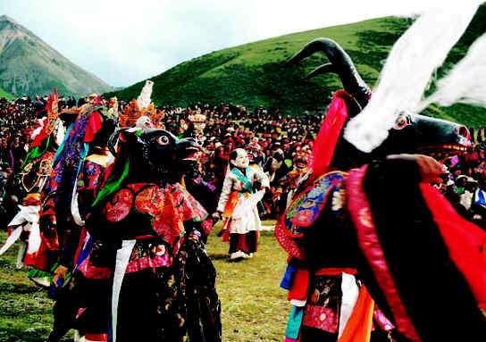 在热振寺的西侧有一个著名的“帕邦当”被僧俗尊为“圣道”。“帕邦”意为巨大的石头,“当”意为草坪或坝子。热振寺里供奉的主尊佛是“降白多吉”(妙集金刚)。藏族民间传说,每逢藏历羊年7月15日,以密集空行母茶吉尼、卡珠玛、桑瓦益西等十万天女下凡,并且诸路女神在此设坛集会超度众生。