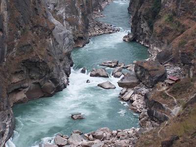 同时,虎跳峡还是丽江远古文明的发祥地之一。峡中玉龙雪山一侧有许多大小各异的洞穴,是远古人类穴居的天然府地,有的洞壁上还留有表现古人生产生