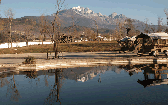 ![]() 茶马遗迹 古老的石桥,光滑的石板路,高突的上马石,马锅头的豪宅,还有马鞍、马铃、马灯、皮口袋、酥油桶,以及来自印度、尼泊尔、西藏的各种商品,抚今追昔,让你浮想了翩。 农耕图腾 耕牛在古老的村寨内健步而行,业林般的粮架耸立在青龙河畔,构成纳西族农耕文化的图腾标志。 束河八景
