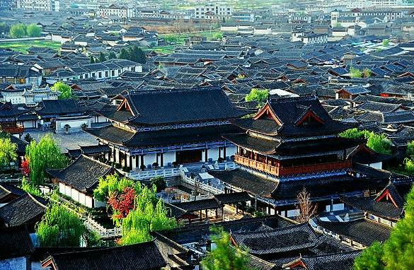 盛时期木府占地一百多亩,有近百座建筑,是八百年大研古城的心脏所在。尽管它只是一座土司的宅院,但它的奢华与恢宏,并不亚于任何一座王公贵胄的官邸。据《丽江府志》记载,从前的木府殿堂巍峨、布局严谨,仅中轴线就有369米长,中轴线上分别有议事厅、万卷楼、护法殿等大殿,两侧房屋罗列,楼台亭阁,数不胜数;花园回廊,风格别致。其总体建筑风格为“仿紫禁城而建”。 木氏土司家族历经元、明、清三个朝代,一共因袭相传二十二代。朱元璋建立
