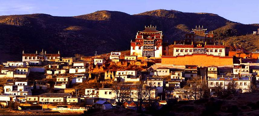 噶丹松赞林寺是云南省规模最大的藏传佛教寺院,也是康区有名的大寺院之一。松赞林寺又称归化寺,距中甸县城5公里。 从中甸县需向北望去,在宽阔的草原尽头,群山之间,有一座集镇规模的建筑群,极高处的屋顶上有鎏金铜瓦熠熠放光,夺人眼目。这片近乎古堡群似的建筑,就是松赞林寺。 |