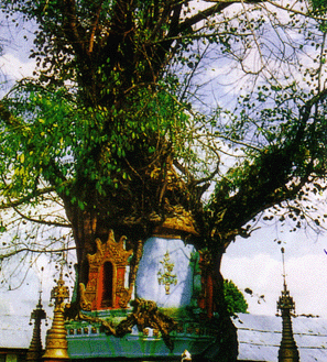 人们常说藤缠树,却从未听说树缠塔。然而在潞西市就有不可思议的树塔相缠的奇观。 树包塔位于芒市步行街中段。此塔已有200多年历史,因建在昔日的姐列寨,故傣语称“广母姐列”,译成汉语即“铁城塔”。始建于18世纪中叶,是芒市第十五世土司放作藩就职期间(1741——1770)为了纪念一场打胜的战争而建。据《傣族简史》载:1767年春,木疏雍藉牙王朝在英法殖民主义的支持下,将侵略战火烧到德宏,目击者周裕在《从征缅甸日记》中写道:“芒市……自用兵以来,田畴荒芜……遮放界连页码:[1] [2] [3] [4] 第1页、共4页