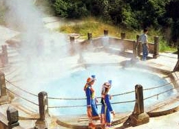 这些温泉、汽泉,按化学万分来分,又可分为碳酸泉、硫磺泉、硫酸泉等。在碳酸和硫磺泉区,草木茂盛,一片青绿;而