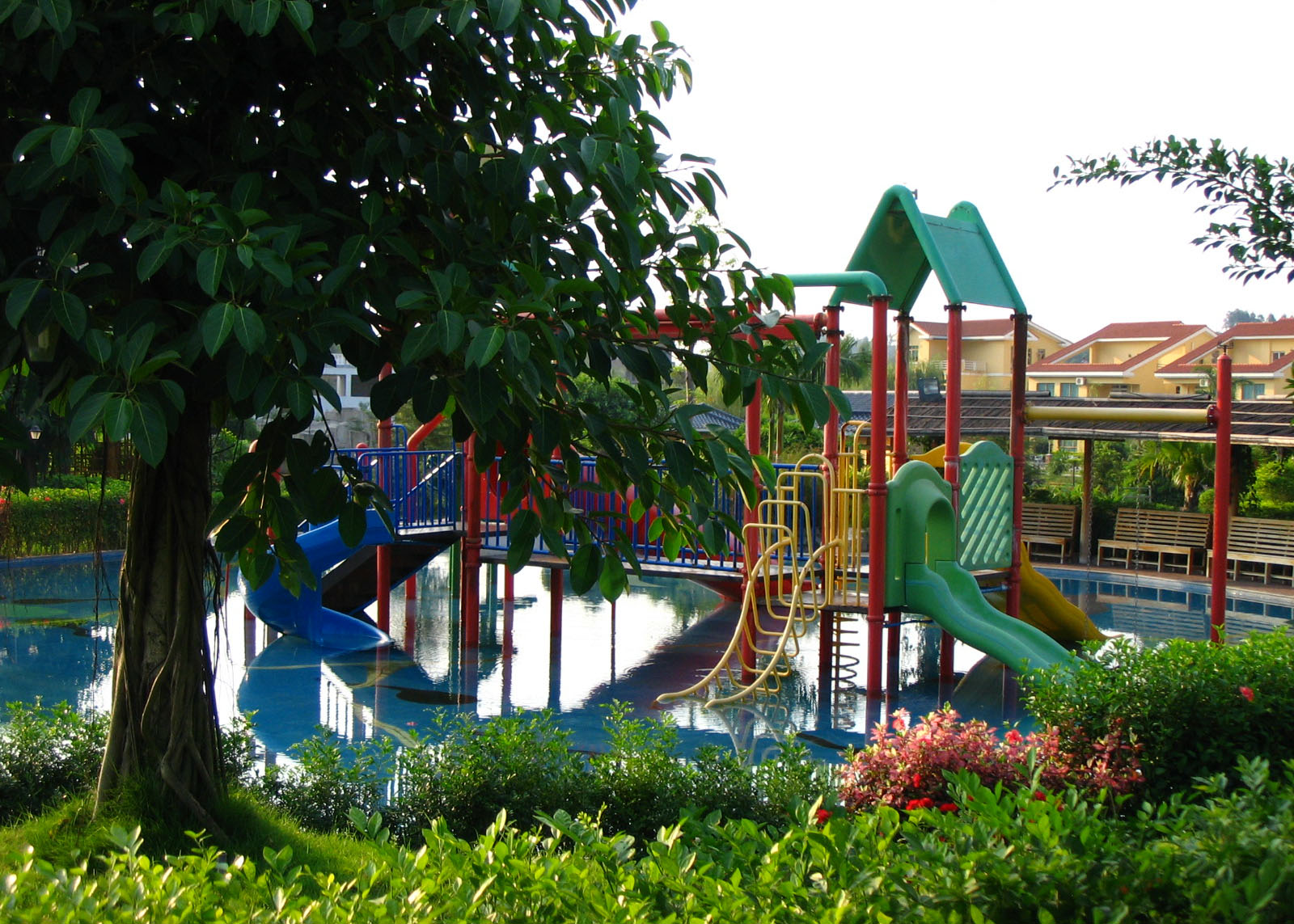 (人工造浪、高台滑坡池、环流池、儿童戏水池)、沙滩游泳池、玻璃钢划船、垂钓区、小河瀑布陆地游乐12生肖园、中心活动区、沙滩渡假村、金龙滑车、空战机、小跑车、高长车、碰碰车、儿童乐园、匹特运动场,呜鸟区、东方魔城、豪华夜总会、饮食厅等30余个游乐项目。游乐场客源主要来自云南省内和本市,场内