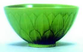 ![]() 东汉、三国时期的产品有罐、罍、壶、碗、洗等。胎质坚硬而较粗糙,釉色有青釉、青黄、青绿和褐釉,釉层不匀,有泪釉现象;纹饰有羽毛纹、网格纹、席纹、窗棂纹、水波纹等。两晋时期呈现出一个缺环,南朝仅见鳖群山一处,器形有碗、盘、罐、壶、钵、砚、灯等;釉色淡青,纹饰以刻划重线莲瓣纹和褐色点彩为流行装饰。唐代早期尚未形成规模可观的窑址群,器物的种类比较单调,制作粗糙。到中期,制瓷技术有了很大的进步,烧造出较高质量的瓷