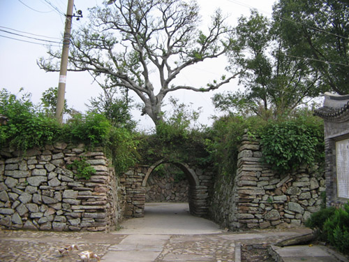 生。两树树枝、树冠纵横交错,相依顾盼。雌树干挺枝劲针叶翠,在分叉9米处长出两枝弯曲如臂的枝干,欲拦腰搂抱雄树;雄树在分叉12米处长出一枝干似长臂高高伸向雌树,你搀我扶互呵护,远看浑然一树,如绿形一堆,正可谓一对“寿星夫妻”。 好了,现在我们往北看,这是清代左营守备衙门的旧址。清代绿营统兵官,位在都司之下,系五品武官,称营守备,咸丰辛酉年间,郡城左营守备衙门遭火灾,同治七年,郡守刘王敖清移驻到此,并拨款建署,校场过去是演武场,现在办成了乡镇企业,这里存有“左营大校场界”界碑一块。 不知不觉的,我们便来到了“化龙渠”,六百多年前,桃渚城墙未建时,溪水径后所山流出。城建后,溪水改道从西面穿城东出,就在西城脚下,原有一桥名化龙桥,相传桥下有一巨石,石上刻有“化”字,为神龙点化,此石已埋沉渠底。为解开这千古之谜,村民组织发掘,果然发现有一巨石,南北架向,只不过三、五尺,石上“化”字,端正雄浑,旁无题款,确有奇异。这里还有个神话故事。 接着,我们去参观一下桃渚城的古街古建。桃页码:[1] [2] [3] [4] [5] [6] [7] [8] 第6页、共8页