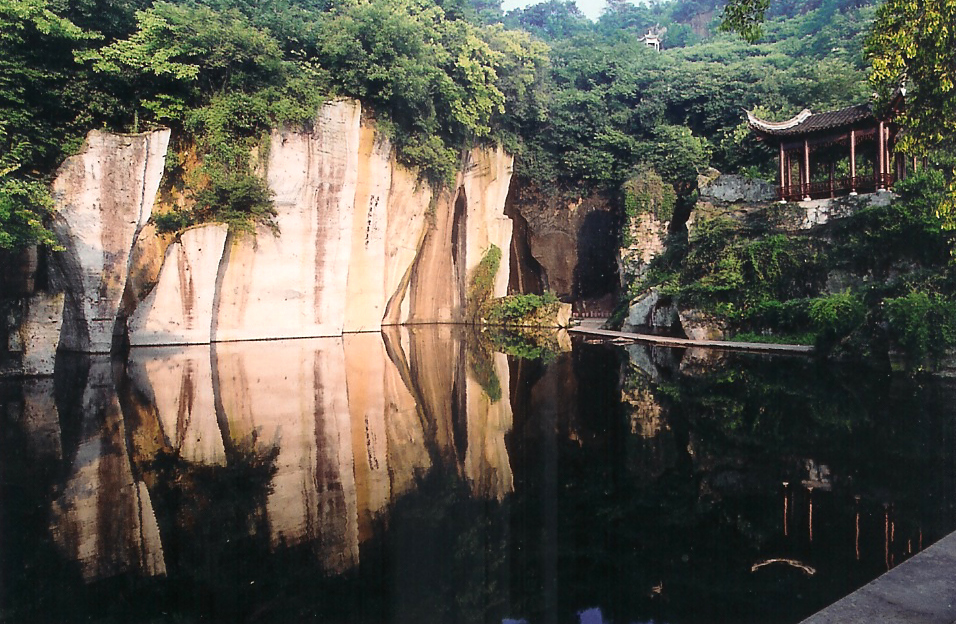 世外桃源”的烟萝洞,令人流连忘返,桃花乐园则让您重返青春年华。吼山桃花每年二月下旬就开,花期为45天左右,在华东地区绝无仅有,一年一度的“绍兴吼山桃花节”,皆是盛况空前。名景赢得历代名人垂青。陶望龄、张岱、袁宏道、徐渭、郑板桥、蔡元培、鲁迅等数十位大家留有足迹,众多的摩崖题刻和杰出诗文就是明证。 试剑亭 试剑亭边上有一块试剑石。绍兴是出产青铜宝剑的地方。春秋时期,当时最为著名的铸剑人