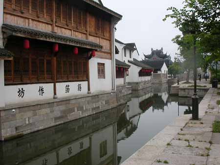被阿Q拽着进了鲁镇的一处*坊,几名游客正在“天地人和”的*台前,悠悠地押着宝。“鲁镇通宝”的铜板是随门票赠送的,终究只是一种游乐,完全没有了小说中押宝时的那种兴奋和颓丧。很快输完了手上的铜板,晃悠到*坊对面的毡帽店,买了一顶乌毡帽戴上,回头跟阿Q比划了一番,似乎更有些鲁镇“居民”的感觉了。 跟着导游来到了鲁镇的当铺,门口墙上大大的繁体“当”字,写法颇有些不