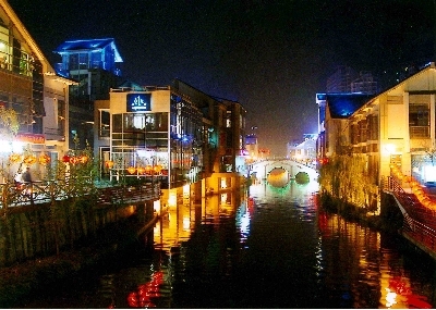 凉亭、走廊、雕塑等。步行街宽16米,沿街一面是3米宽的骑楼,沿河一侧则有建筑局部向河里延伸。两岸通过露亭桥、草营桥、归锦桥三座各具特色的古桥相连,形成“街上有河,河上有街”的独特景观。河西有一个游船码头,人们在购物之余乘船而游,眼前呈现出一幅优美的江南风情画卷。 信义坊步行街借鉴古代江河街市的模式,结合传统运河文化的精神,以现代建筑技术,将传统文化的精神表现得淋漓尽致。为充分发挥运河文化的魅力,利用其得天独厚的自然 条件,将步行街设计为余杭塘河两岸而建,并沿河向东西两边展开,总长度500余米,两岸间还通过三座各具特色的古桥连接,形成“街中有河,河中有街”,一河两街三桥的独特风景。