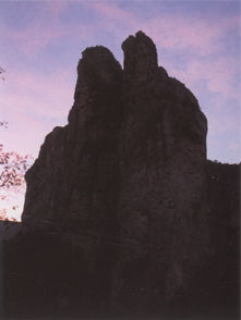 旗袍的苗条少女,面容忧郁,凝思远望,人称“相思女”。再走到灵峰饭店屋檐前反身仰望,相思女又变成了一只敛翅高蹲的雄鹰。有郭沫若的诗云:“灵峰有奇石,入夜化为鹰,势欲凌空去,苍茫万里征。”再站到花坛东侧仰望,出现在眼前的是一对紧紧偎依的情侣,这叫“情侣峰(夫妻峰)”。灵峰夜景最富有诗意,实为雁山一绝胜。【犀牛峰】 位于凌霞峰旁的高岗上,昂首东向。在灵峰饭店的花坛旁抬头可见此景。当皓月东升时,那犀牛伸着脖子,遥望月亮,故称“犀牛望月”。为灵峰的著名夜景之一。 【观音洞】 藏于合掌峰之中,洞高113米,深76米,宽14米,依岩构筑九层楼