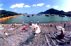 乌石塘昔日是渔民晒网的地方,现在已是朱家尖的重要景点之一。你可以在乌石塘看到成万上亿颗乌黑发亮的鹅卵石,乘上"海上泛舟",可以听掌舵渔翁为你讲述乌石塘和樟州湾的传说,一定会增添浓浓情趣。