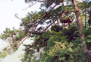 妙高台位于飞雪亭西约 5 0 0米,又名妙高峰、天柱峰。海拔 3 9 6 米。顶上有坪如台,名妙高台,约 3 5 0 平方米。东西南三面均是峭壁,云雾四合,如置仙境。云雾初开,凭栏四眺,爽风迎面,松涛盈耳,近峦远岗,仪态万千;台下亭下湖嵌镶群峰间,被光岚影,别有风情。宋代楼钥《妙高峰》诗:“一峰高出白云端,俯瞰东