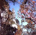 枫岭石林 在离石林飞瀑约 100米的峡谷旁。一条石径从溪水哗哗的山脚盘盘折折直至山顶的白云深处,这就是枫岭。岭旁尽是蔽无遮日的红枫,生机勃勃,直冲山顶。春天,与五彩的山花相映成趣,夏日绿荫,到了秋天,满岭火红,那真是进入“远上寒山石径斜,白云深处有人家。停车坐爱枫林晚,霜叶红十二月 花”的诗的境界。岭上有一“流米岩”,岩有孔,传为仙人所赐,日流斗米接济百姓,后为贪婪之妇所坏而无米流出。山上,有石笋无数,神态各异,引人入胜。 白龙潭 在离枫岭石林约200米的溪谷中。潭口两爿石壁相夹,宽仅4米,名龙门,龙门内豁然开宽;潭 内,绿波粼粼如碧玉,似翡翠;潭中央,一条白色石梁,酷似蛟龙戏水,白龙潭故名。潭头,有一块赤红的圆形巨石,名龙珠。白龙潭左侧,五座石峰刺云簇天,名五指山。五指山上有一巨石,似僧,咧嘴笑迎天下客,名迎客僧。此处还有“大胜将军”、“饮马峡”、“罗汉山”、“金狮潭”、“稻桶崖”等景观。稻桶崖从溪谷拔地而起,高达百米,形似巨桶,如利斧劈就,乱云飞渡,险峻异常。