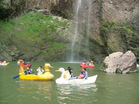 这里叹为观止的数五级特色各异的飞瀑,最下一级从 112.5米悬崖倾斜而下,形若垂练,溅如跳珠,散似银雾。新近开发的太子胜境景区,有“太子顶”、道士观、牛鼻洞、透天洞、圣水洞、神鹰洞、南海二童子、无字天碑、九龙抢珠、圣水潭等20多处高质量的地貌景观和水景,使石门洞游览范围扩大,景观内容更加丰富。