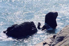 弹指峰:高约50米,形如拇指从掌中弹出,如宝剑倒插在海边,孤峰矗立、刀削斧劈、悬崖绝壁、凉风习习。相传这里是当年黄药师练功习武的地方,东邪黄药师弹指神功、凌波微步和凌波剑法就在此练成。