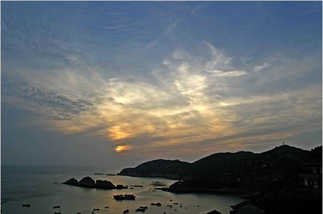 小西天枸杞岛的最高峰,地处岛的西端,是岛上观日落的最佳场所。如果想拍日落,最好在半山腰处,夕阳西下波光粼粼的海面上停泊着渔船,非常美丽的画面。
