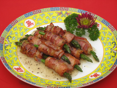 描述:黑椒芦笋培根卷