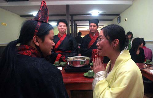 仿汉代餐厅开业 穿汉服就餐