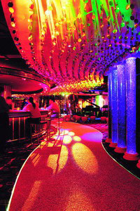 空中就餐 在长安戴斯大饭店26层的A+A餐厅用餐,会感受梦幻般的浪漫气息。童话故事中的蔚蓝色穹顶,神秘绚烂的紫色装潢,银光霭霭的透明灯柱墙……相得益彰,令人充满无限遐想。 A+A餐厅,以肉类和海鲜的