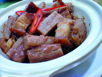 地处广东中西部的肇庆,各地物产丰富,山珍尤多,流传着“怀集木、广宁竹、德庆谷”之说,像西江河鲜、莲藕、高要麦溪鱼、山坑螺、德庆佛手、中药材等深得灵洁之气。“名人”将这些分散在肇庆各处的食材,用专车运到,再结合广东人的口味,运用无国界的手法去烹制,每期做出10多款菜肴,并依季节和客人受落程度不时更新。不说不知道,连油、米都是从肇庆运来的,看来,店家是要把“地道”二字进行到底了。 此莲藕种在鱼塘的旁边,许是汲取了鱼塘的营养,吃起来粉嫩中有松化清甜之感,与猪油渣