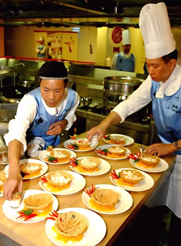 参加“2004美食之最大赏”的厨师正在制作菜肴