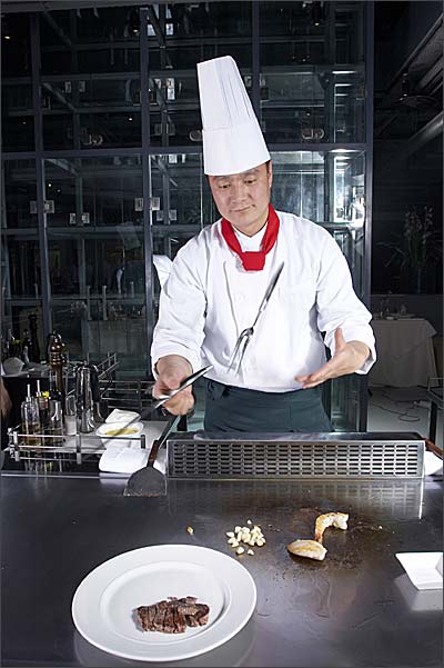 点了一份牛排套餐,里边有美国西冷牛排、煎明虾、法式煎鹅肝和银鳕鱼,看来这里是按照法式风格来配餐。首先登场的是俄罗斯黑鱼子酱、煎鹅肝蒸蛋,用小勺子轻搅盛入口中,那种香、滑、爽、甘的感觉让你禁不住眉飞色舞。