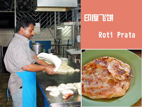 新加坡著名的印度抛饼(上海称作“飞饼“),不仅是新加坡印度人早餐的首选,也是许多新加坡华人早餐与夜宵的最爱。印度抛饼师傅先以简洁娴熟的手势捏搓面团,再加以奶油或油在锅中煎烤,同时有节律地进行旋转式的抛掷面团动作,动感十足,绝对是视觉的享受。轻薄香脆的印度抛饼可加蛋或不加蛋,可根据各自喜好选择不同的咖喱(或白糖)蘸着吃,让人爱不释口。有些人干