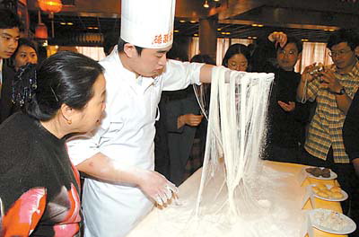 在北京前门全聚德烤鸭店老铺前,厨师在为顾客表演抻龙须面。 有一些城市,是你去许多旅游目的地的时候必然经过的中转驿站,一如长沙,一如成都。也许,在第一次途经时,你就已看过了这个城市的所有风景,第二次途经时,城市里的小吃就成了在这个旅行驿站的重点进攻对象;又或者,你根本不打算作一次尽管精彩却疲惫的旅程,只想一路走走、吃吃、看看。 第一站:辣味长沙 长沙市内,可供参观游览的景观景点多达50多处,湘江西岸的岳麓山、月亮岛,湘江河中的橘子洲,东郊的马王堆汉墓以及市区中心的天心阁古城楼、开福寺等,都是令人留恋的著名名胜。 通常来说,长沙是旅游的一个中转驿站,逗留期间,小吃是其重头戏。相比旅游,长沙小吃来的更加直接,开发得更