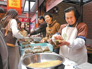 蜀都大厦附近:乘4路车,在蜀都大厦下车。离蜀都大厦只有三十步不到,就有两个超重量级的成都小吃的老招牌:钟水饺和赖汤圆。这两家老字号都挨得很近,一两钟水饺和一两赖汤圆,总共也不到6元。 青羊宫:乘5路、27路等车,在“青羊宫”下车。可以选一家火锅店,但一定要点红味锅,白味相对红味差太远了。这里的火锅味道是最正宗、最地道、最有老资格。花费每人40元以上为佳,点鱼头时最好点净鱼头,虽然贵,但更好吃。晚上人太多,最好中午去。 交通:成都的公汽非常方便,一般都是1元。成都出租车价格也很适中,起步价仅4元。 上海市郊的七宝古镇,已成为继周庄、西塘、朱家角之后,江南水乡的又一选择。优越的地理位置,低廉的花销,琳琅的美食。小桥流水的七宝古镇里,有明清时期的钟楼、吊脚楼、牌楼、戏台、老字号、名人纪