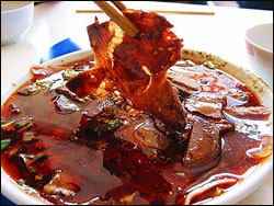 川北凉粉 ■天府广场附近的陕西街,应该还有成都特色的面食——崇州羊马喳喳面,面条本身是自己机制而成,韧性非常好,在吃面时一份十分可口的跳水泡菜,和面条上用猪肉炸制的喳喳,是其鲜明的特点,无论色泽还是口感都是非常的棒,小份三元大份五元,另外一般吃喳喳面同时,会有点雪豆蹄花或则崇州三绝之一的天主堂鸡片,是四川拌菜里的上佳名菜; ■在天府广场右侧,是皇城清真寺,其侧面的应该是成都最正宗的兰州拉面; ■天府广场后面是成都的骡马市商业圈,在喜来登酒店对面,就是成都市国营的担担面,里面有很多种面食,