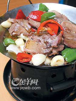 至于吊锅腊肉,如果吃不惯烟熏食品的客人就会觉得味道有点奇怪,见仁见智吧,而剁椒蒸鱼头个头很大,而同去的朋友就嫌它太辣了点,要不断喝汽水才消得掉那股辣味。在吃过了这些味道浓烈的菜式后,上一道鸡汁萝卜丝清清胃口就刚刚好了,用鸡汤煮的萝卜丝虽说色泽上白花