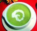 拾级而上,二楼的环境令人眼前一亮。或鲜红或墨绿的桌布,高背的就餐椅,耳边飘来意大利著名男高音波切利来自天堂的嗓音,角落里有舒适的沙发区……餐厅面积不大,却很cozy。 不是情侣的约会,好吃才是硬道理!我们点了翡翠浓汤、蘑菇浓汤、pizza、烤西兰花、龙须菜沙拉和笑脸薯片。第一道上来的翡翠浓汤,由西洋菜做成,加上意大利香料,最后点缀以白色鲜奶油。汤如其名,宜细细品尝,不由想起徐志摩的诗《翡冷翠之夜》,一时陷入前年游大卫的故乡的种种情境。这里的披萨皮不如“必胜客”的油腻,面上的奶酪分量多多,加上五颜六色的配料,令人食欲大增。火局烤西兰花是老板的推荐。花菜与意大利香料及奶酪的完美配合,加上火局烤的效果,风味独佳。 餐馆女主人是多年的严格素食者,热情好客,殷切询问我们饭菜是否可口?原来素食也可以这么美,同伴和我不约而同地感叹。 美食链接 由于厦门大学有香火鼎盛的南普陀做芳邻,厦门也有不少笃信佛教的家庭,所以厦大周边有好几家中式素食餐厅。南普陀素菜馆以素菜素做闻名,天荷素菜馆和大方素菜馆都有仿荤类素菜,天荷有一种可外卖的素肉松做陷料的小点值得推荐。