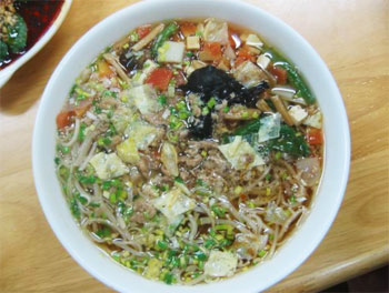 炒米:其实就是炒饭,但西安好象没有这么个叫法。我在介绍西安小吃和小兔子的文章里全看到过介绍“红红炒米”,到了那里,当然要尝一尝。晚上有很多桌子摆在路边,我们也找了一张空的坐下,会有服务员过来问你吃什么,点完以后,没过两分钟就上来了。观察了一下,好象这个就是直接炒出来,然后看哪桌要就给端过来,虽然后来又去了一次,不过我也没搞清楚那里是不是就做这一种炒米。那炒米是用酸菜和牛肉末一起炒的,味道很好,考虑回来以后可以自己实践一把,看能不能做出这种味道。我们因为是吃完晚饭再过去的,没吃太多,三个人就要了一碗,不过那可是那天晚上我们唯一全部吃光的东西。 肉串:在很多小吃店的旁边总会有烤羊肉串和牛肉串的炉子,很便宜,2毛一串,同样也是烤好了端到每个桌上来问你要不要,一般十串起卖,由于很小,不用担心吃不下去。结帐的时候就数铁钎子,很方便。不过由于上面的肉很少,吃起来没太多感觉,觉得还是北京的羊肉串好吃。后来看见有一家,有整只的羊挂在外面,好象可以现穿羊肉串,可惜眼大肚子小,就没有再吃了。同时那里还有卖涮牛肚的,3毛一串,红红的,上来的时候刷了麻酱,总觉得味道有点淡。 ![]() 羊肉泡馍:这次吃的羊肉泡馍是在据说最正宗的老孙家吃的,为了品尝当地小吃,集体定了老孙家的风味餐,10个热菜10种小吃。其中就有羊肉泡馍,上来的时候是机器弄好的,没有体会到自己掰馍的过程,由于那时候已经吃的比较饱了,也就是尝了两口,没留下太深的印象。不过后来有一天去大皮院,看到了小兔子介绍的小炒馍,来了一份优质,一块馍我掰了大概10分钟,再送去给厨房炒,大概等了10分钟。本来以为炒馍出来会是干干的,谁知道也是有汤的,里面有蘑菇,