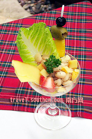 3、白豆沙律 用苏格兰有名的oregano和parsley香草与芝士搅拌在一起,在配上苏格兰特产的白豆。