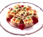 绞肉半斤、香菇末、青豆仁、红萝卜末、叉烧肉末、姜末、葱末各少许,澄面3杯。高汤3大匙、盐1/2茶匙、酒1/4茶匙、味精、胡椒粉、麻油各少许。