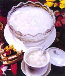 用优质白糯米为原料,经过水浸水磨后加工成糯米粉,将水磨糯米粉搓成小圆子待用。以上等白糯米蒸熟后,按一定比例掺和进酵母,几天后即成香味四溢、甜糯适口的酒 酿。把水烧开放入小圆子,待其浮到水面,再加入酒酿、白糖和蛋浆,搅匀勾芡,盛入碗后撒糖桂花即成。