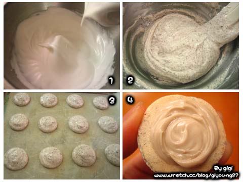 製作:1、榛子粉、粟粉、糖霜混合過篩,砂糖分兩三次加入蛋白打至忌廉狀;2、加入過篩的粉類拌勻,用圓形擠花嘴擠出一個個小圓形,進烤箱底層(烤箱先預熱180度)馬上調至150度烤10分鐘,再調至120度烤10分鐘左右,最後調至110度烤約5分鐘後出爐;3、待Macaron涼後夾上榛子醬即可。[1] [2] [3] [4] 第2页、共4页