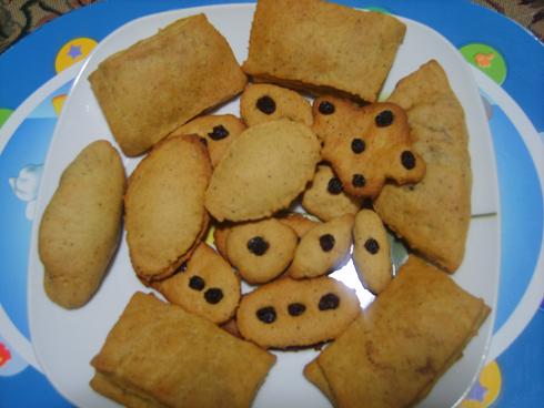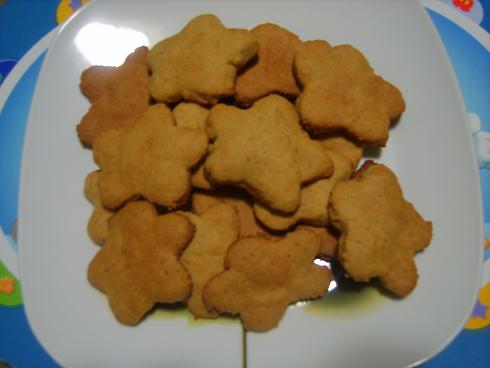 在烤箱里的饼干,做了两盘,分两次烤;