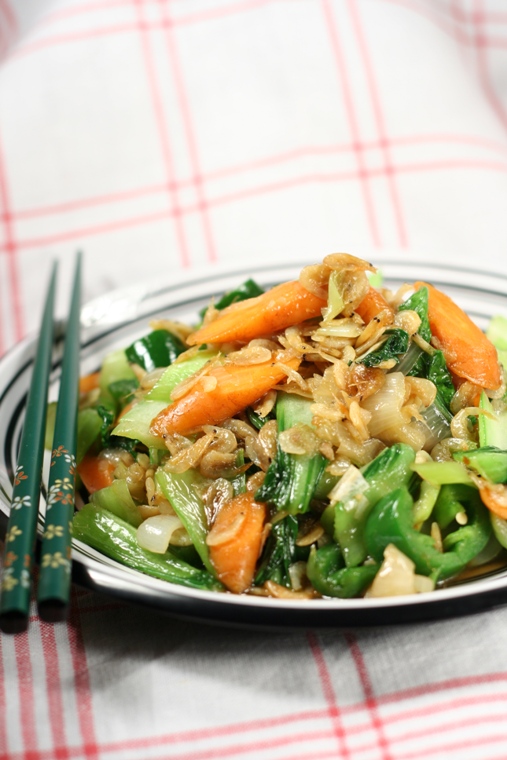 请了一个跳舞的朋友来吃饭,本来想做麻婆豆腐,她不吃辣椒,所有只放了一点点辣椒。 虾米炒青菜: 做法:油热后,下圆葱炒香,放入虾米炒1分钟,放入青菜、胡罗卜、辣椒炒3分钟,加蚝油即可。 ![]() 成品