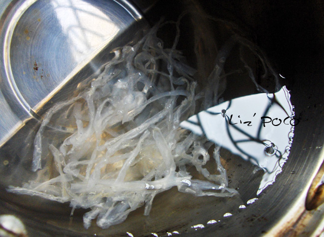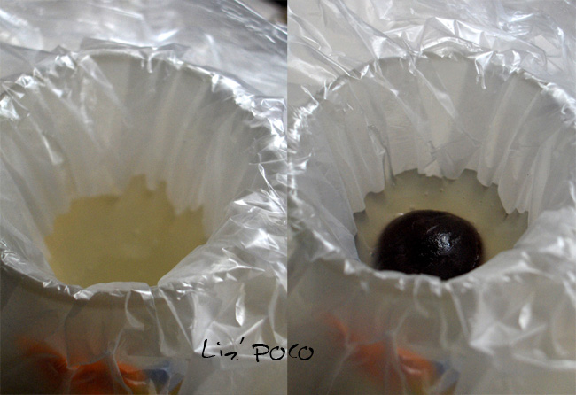 紫番薯泥150g,糯米粉35g,砂糖30g,豆沙 适量 1.紫番薯泥加入糯米粉,砂糖拌匀成泥 2.包入豆沙,放入模型中,扣出(没有模型,用手捏的~~) 3.平底锅小火各面煎3分钟 PS,做的不是很好看,对“和果子”的说法也可能有不对的地方,这个要向momi姐请教了~~~ ![]() 琼脂泡软~ ![]() 用保鲜膜~<